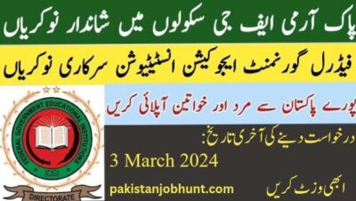 There are 75 positions to be filled for male academics at Federal Government FG School jobs. The subjects with the very best number of openings are English, Computer Science, and Urdu. Candidates need to have at the least a second-magnificence master’s degree within the applicable area. The pay scale is BPS-17.